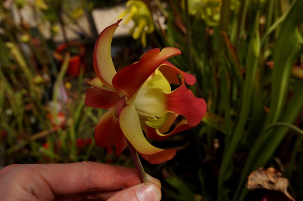 Ce cultivar provient de l’hybridation entre Sarracenia « HNI12 » et « Adye ».