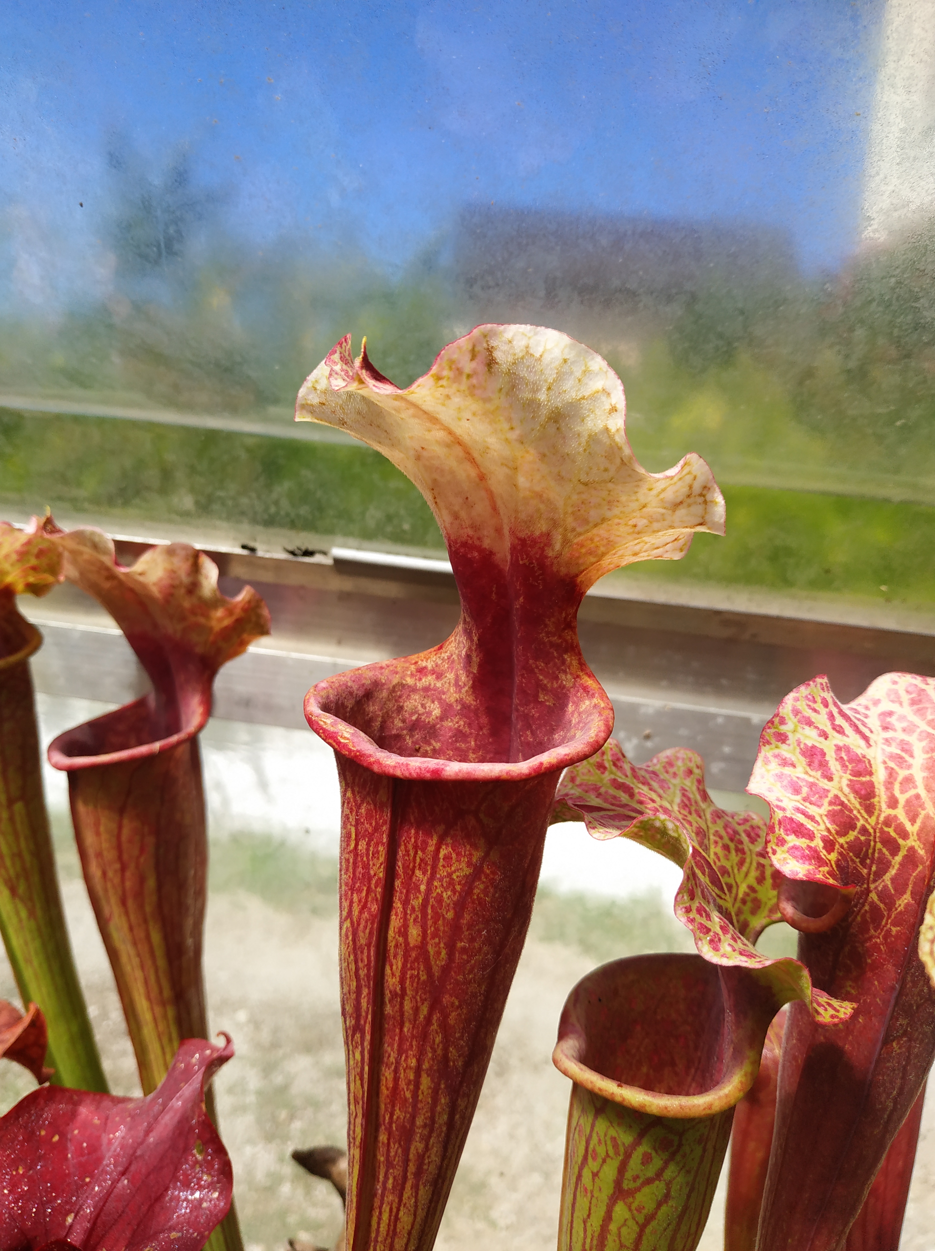 Ce cultivar provient de l’hybridation entre Sarracenia « HNI12 » et « Adye ». Il présente des pièges très vigoureux et est particulièrement productif du printemps à l’automne. Cette vigueur provient de son parent HNI12 qui est un hybride à base de de S. oreophila. Les fleurs sont rouges et jaunes avec des reflets cuivrés, le haut des pétales … Lire la suite Sarracenia « Alexandra »