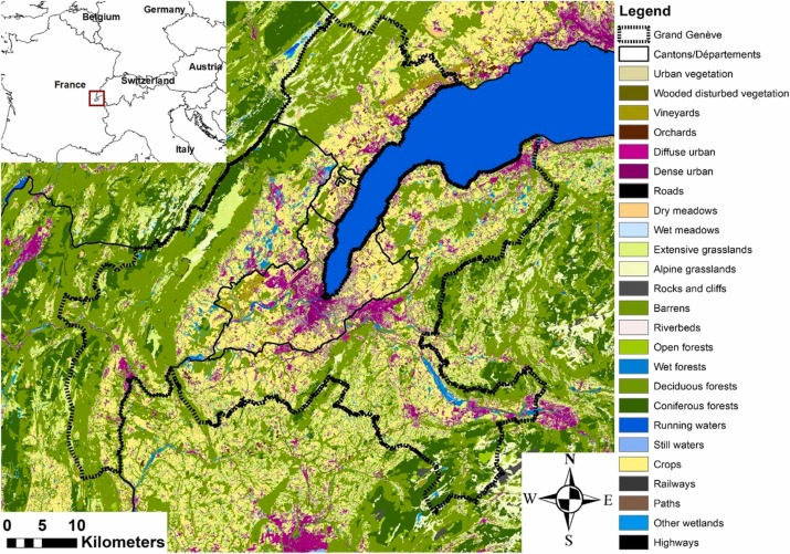 Durant ce travail j’ai modélisé la distribution de plusieurs espèces de plante sur le territoire du Grand Genève en utilisant différents prédicteurs (variables environnementales) afin de tester lesquels étaient les plus pertinents dans notre aire d’étude. C’est une étape cruciale si l’on veut ensuite pousser les analyses plus loin, par exemple en modélisant les distributions futures des espèces. Le Grand Genève est un territoire à cheval entre la France et la Suisse qui contient le canton de Genève, une partie du canton de Vaud, une partie de l’Ain et de la Haute-Savoie. Ce territoire inclue aussi une partie du Jura français. Il est donc simultanément sur deux pays, deux cantons, deux régions et trois départements ce qui complique beaucoup l’accès à des données homogènes.
