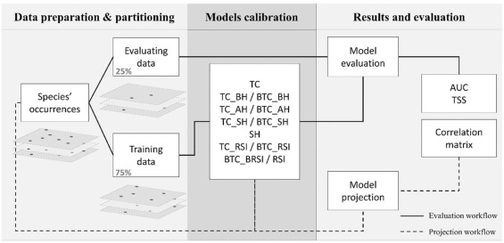 Idée générale des modélisations menées pour chacune des espèces (Sanguet et al., 2022)